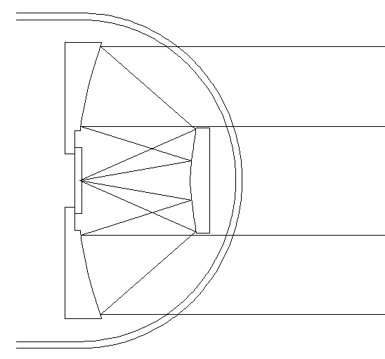 The image below shows a ray tracing of the current optical design.