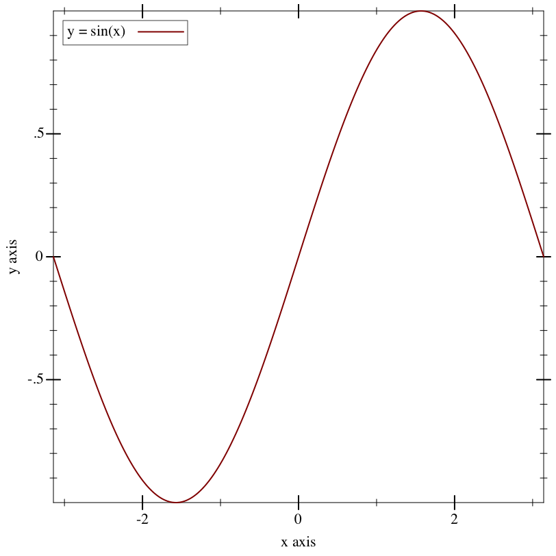 In the above example, (- pi) and pi define the x-axis bounds, or the closed interval in which to plot the sin function. The function function automatically determines that the y-axis bounds should be [-1,1].